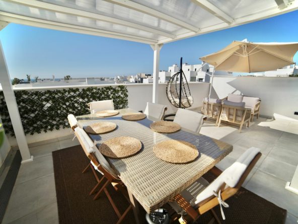 This townhouse in Los Miradores del Sol, Bel-Air Estepona, is one of the very best units in the community, built in 2022 and presented in excellent condition with high-quality materials throughout. It offers a smart layout and generously sized bedrooms.