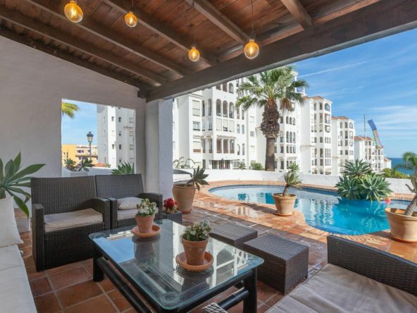 Discover this charming Semi-Detached house, with 4 spacious bedrooms, fully furnished and in a magnificent location, with sea views. Located in one of the most recognized urbanizations in Estepona, just 1 km from the center and 2 minutes from the Marina, where you will find a wide variety of restaurants and shops. Its very spacious outdoor areas stand out, with a large terrace, facing south and a private pool to enjoy the sunny weather.