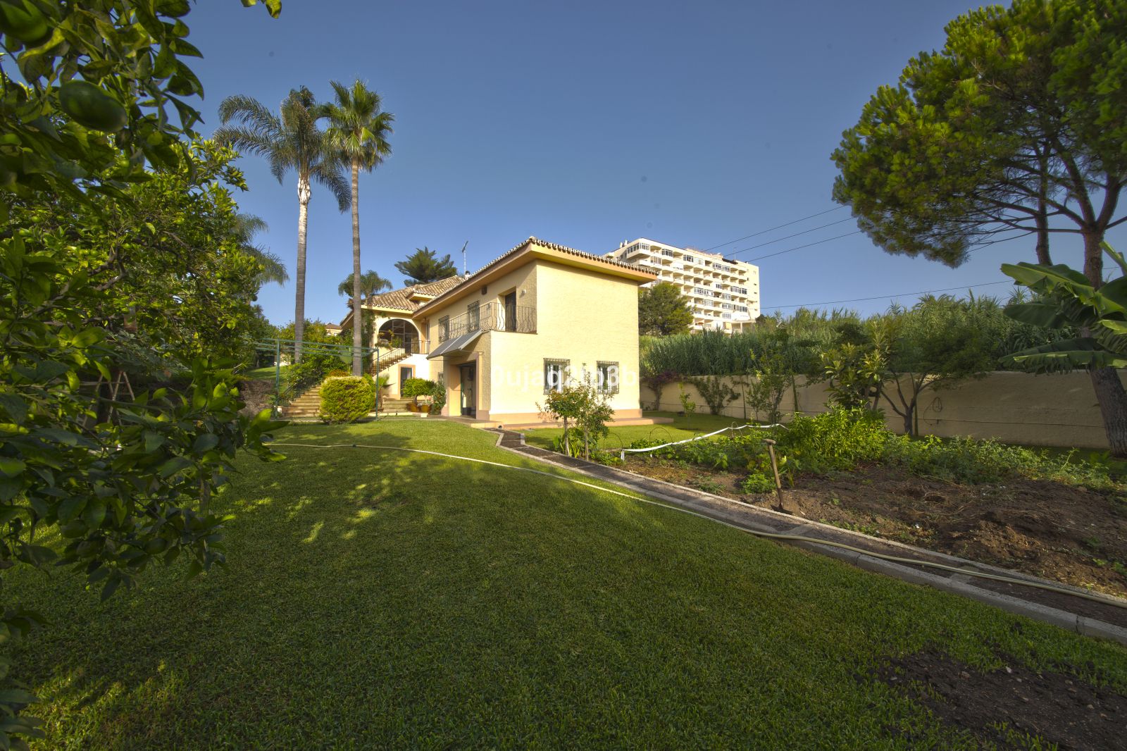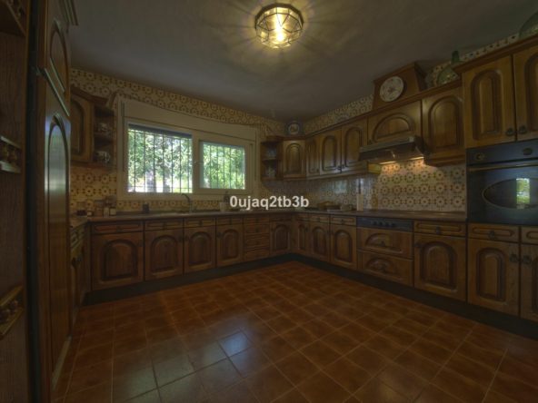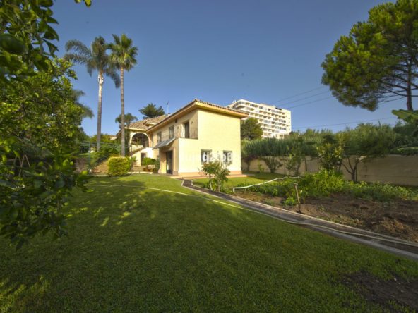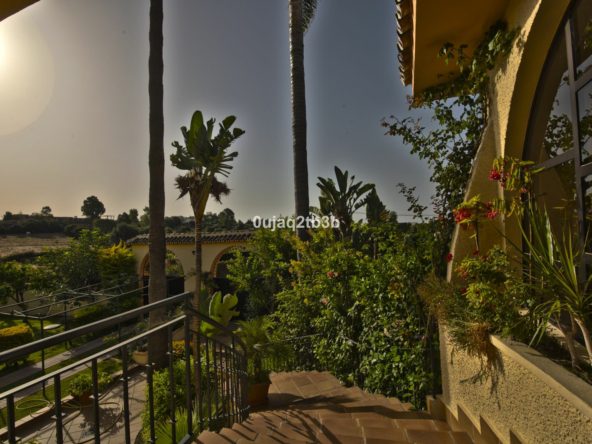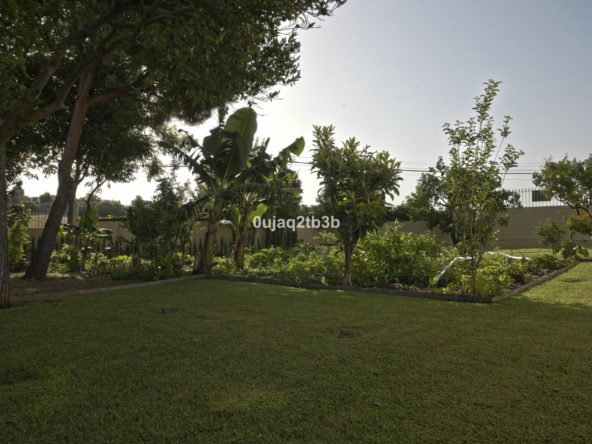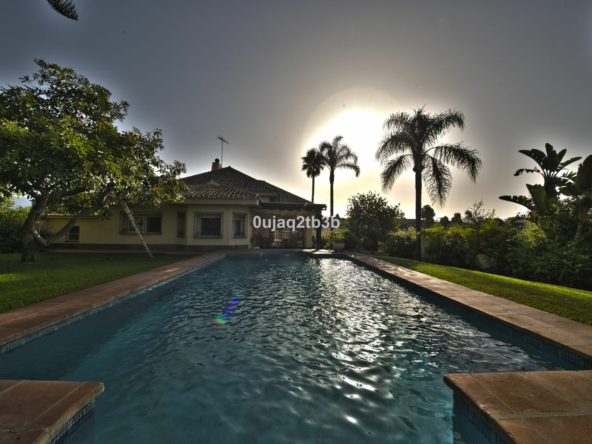 Very nice and ample traditional villa located close to ALDI and Burguer King and the beach on the New Golden Mile. Only 5Km from Estepona center and less than one kilometer to the beach. The large plot can be divided, currently part of it is used to cultivate fruits and vegetables. The house includes a garage for one large car being able to park more vehicles inside the plot. Ample living room, with a total of five bedrooms and 4 baths. Master bedroom en-suite. Large covered terrace with views to the large pool. Separate guest/staff apartment. Well maintained.