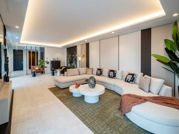 Spanning 4 floors of beautifully designed living space on a 1,283 m² plot. Expansive open-plan living areas connect seamlessly through floor-to-ceiling glass panels, while the state-of-the-art kitchen with high-end appliances and sleek design makes everyday living feel extraordinary.