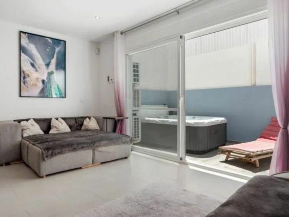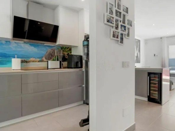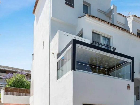 It is a corner unit with only one direct neighbor, which offers greater privacy. The location is unbeatable, the whole center of Estepona is within walking distance, and the property is not subject to expensive community fees.