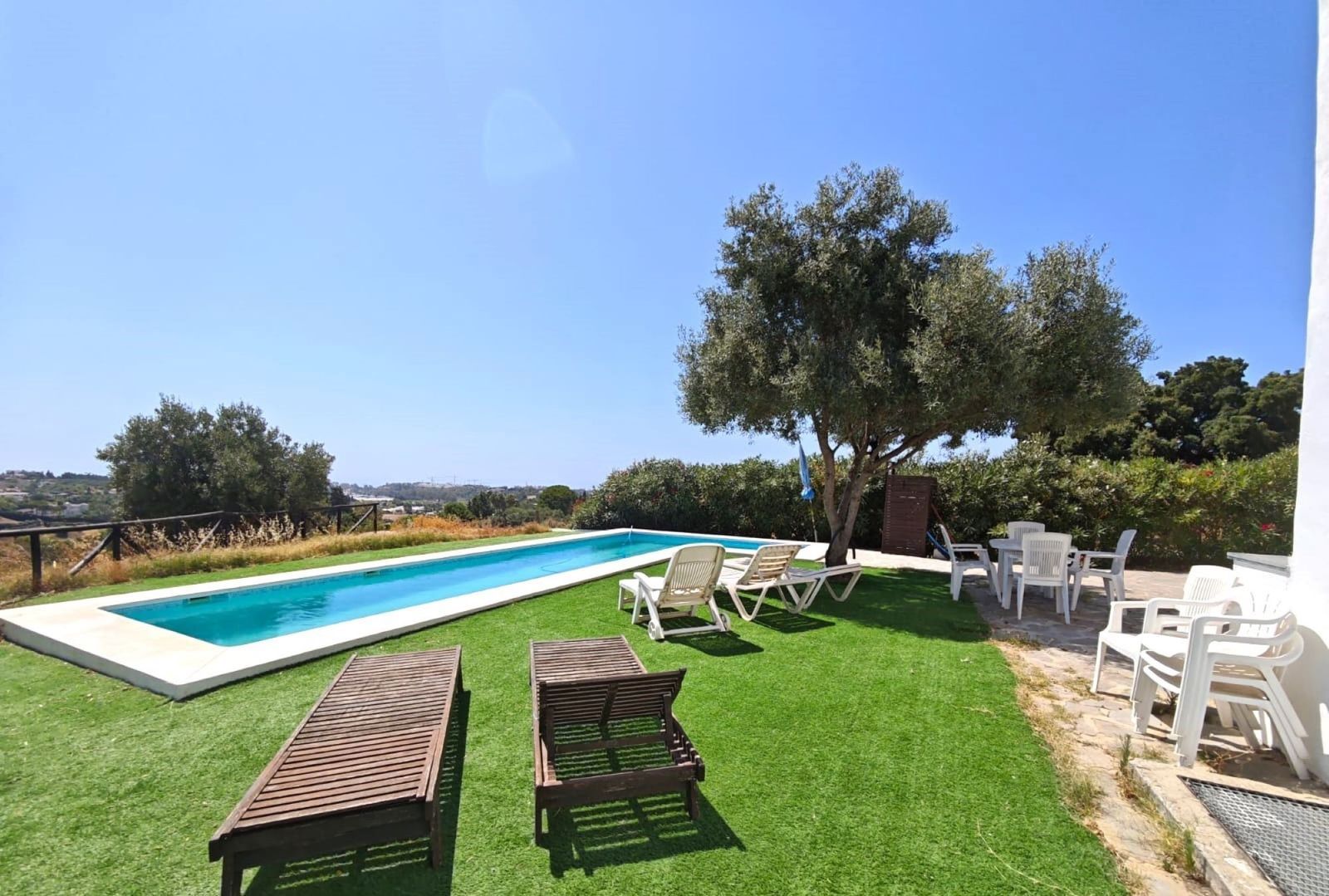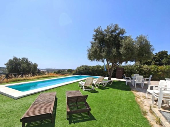 Spectacular villa in an elevated position with stunning panoramic views of the Mediterranean Sea and the mountains. Located in the Padrón area of Estepona, surrounded by nature and just 10 minutes by car from Estepona, where you will find all kinds of services such as restaurants, bars, hotels, and supermarkets. The house is spread over two floors, featuring 4 bedrooms and 4 bathrooms, 2 living rooms, and 2 kitchens (separated with independent entrances), ideal for hosting family or friends. It also includes a completely open basement of 105m2, with a kitchen and bathroom, which also has an independent entrance, with possibilities to build a home cinema, game room, or another independent apartment. The views from both the terraces and porch are incredible. The possibilities of this magnificent house are fantastic. In the outdoor area, there is a swimming pool, 2 porches, parking space for several cars, and the remainder of the 4037m2 of land that the property possesses. The property has a tourist license.