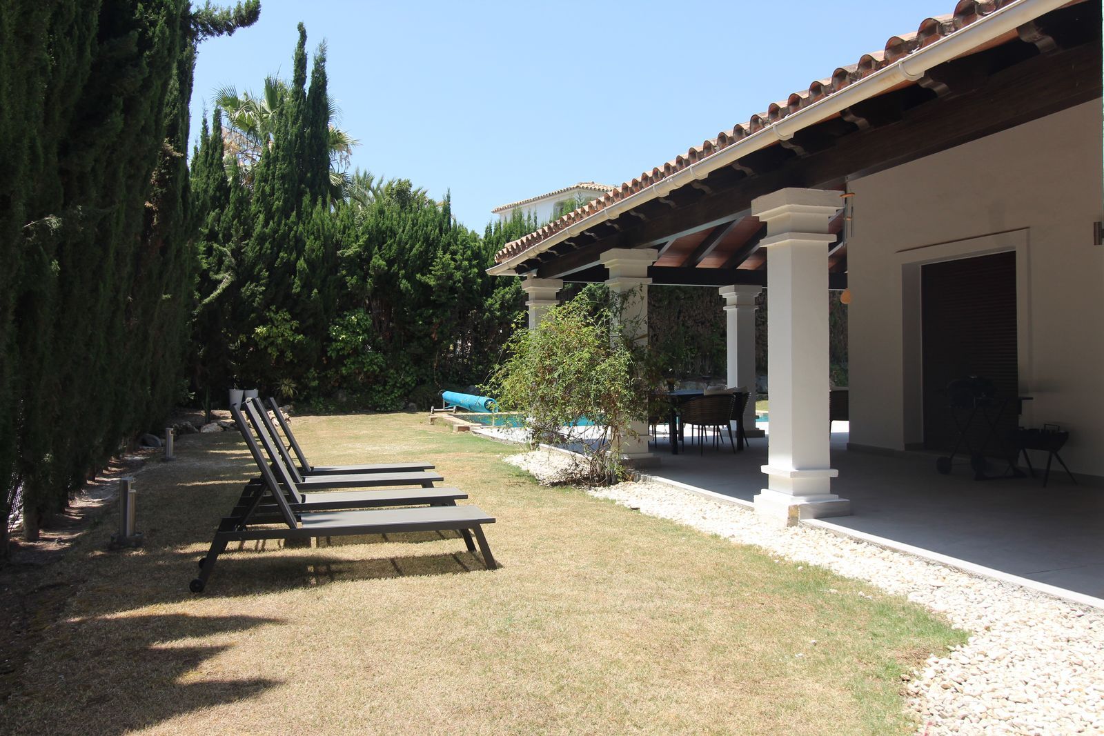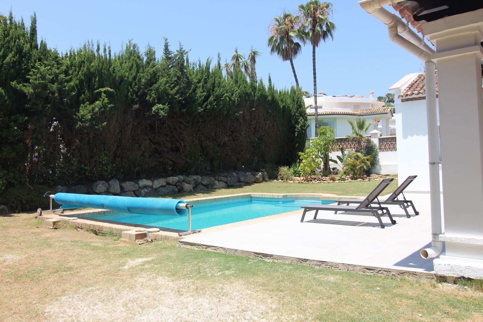 Situated in the prestigious and tranquil area of El Paraíso, Estepona, this stunning villa offers the perfect blend of space, comfort, and classic charm. Set on a generous 973 m² plot with over 400 m² built, this beautifully designed home spans two floors plus a basement, offering a functional layout ideal for family living or as a holiday retreat.