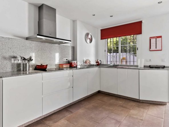 Additionally, the guest apartment on the ground floor is ideal for visitors, with its own kitchen and bathroom. Enjoy the Mediterranean climate in the beautiful garden with a private pool, BBQ area, and outdoor showers. Two covered terraces offer perfect spaces to relax outdoors.