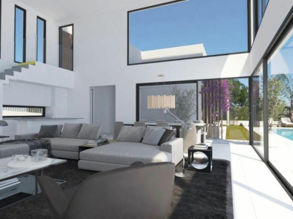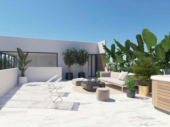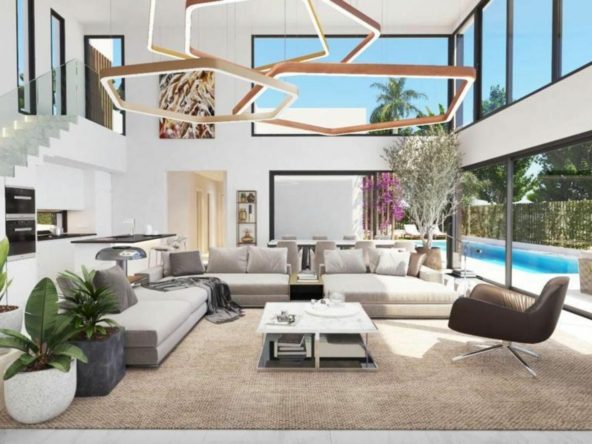 This luxury villa is currently under construction, allowing for customization according to the client's tastes and needs. It features 3 spacious bedrooms on the main floor, plus a fourth bedroom on the upper floor next to the terrace.