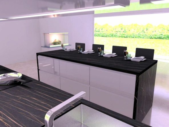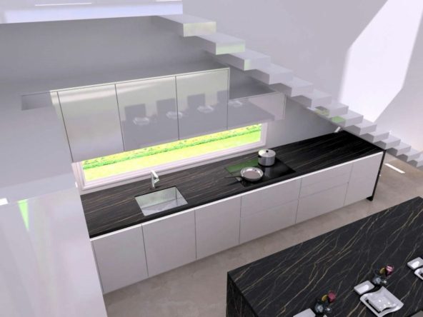 The villa consists of 3 floors. The basement will include a garage with space for 3 large cars and another spacious room that could serve as a gym, cinema room, etc. On the ground floor, we would have the entrance hall, a large living room with an open-plan kitchen, 3 bedrooms, 2 bathrooms, and a laundry room; the master bedroom will be en suite with a dressing room.