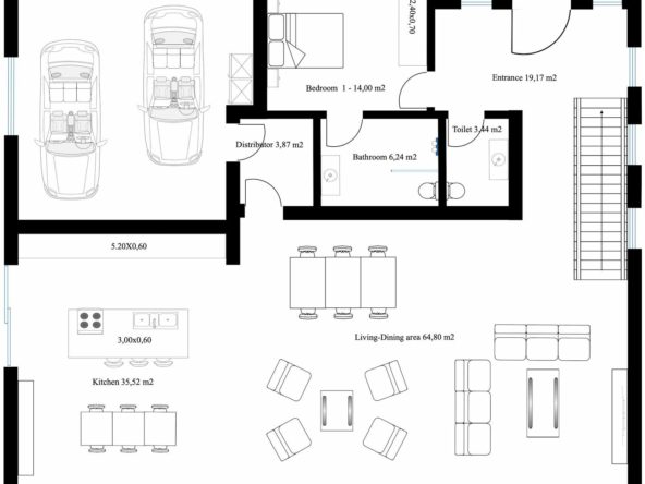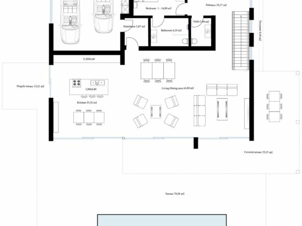 Consisting out of; ground floor, entrance hall, guest toilet, open plan living/dining area with a fully fitted kitchen, master bedroom with ensuite bathroom and dressing, covered carport for 3 car, 2 further bedrooms each with their ensuite bathroom.
