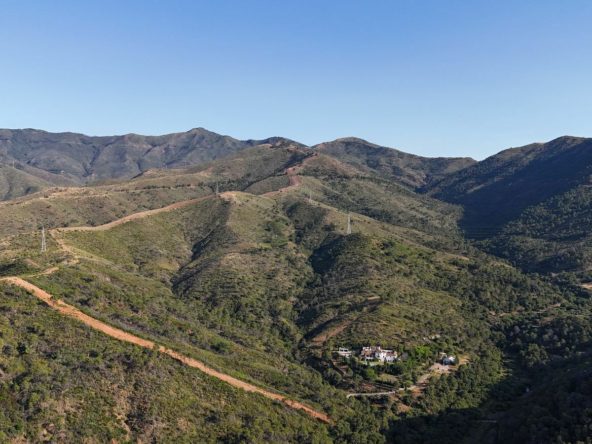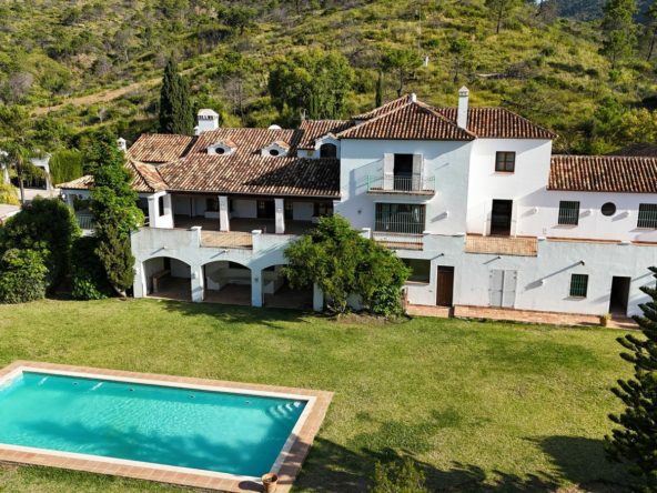 Unique Finca – Cortijo with 550.000 m2 of land and river, just 8 minutes drive from the A-7, between Estepona and San Pedro. This property is in a rustic protected area, granting tranquility, privacy and being totally surrounded by forest and mountains, yet only like 15 minutes drive from the beach,”Laguna Village”, etc.