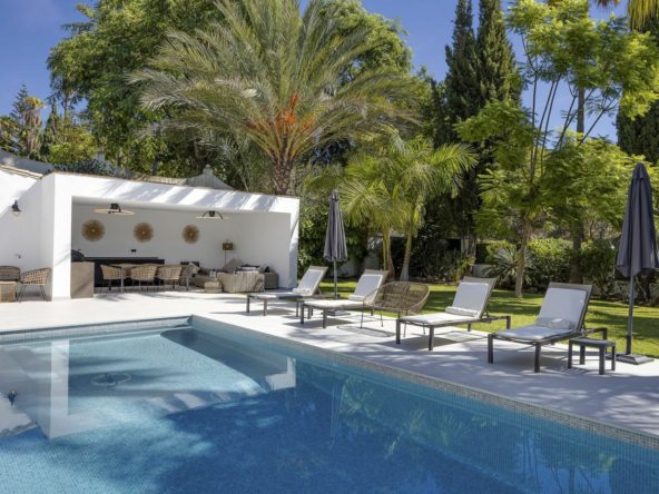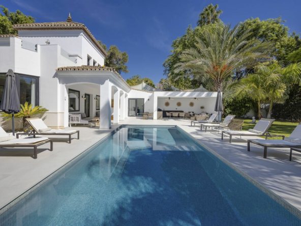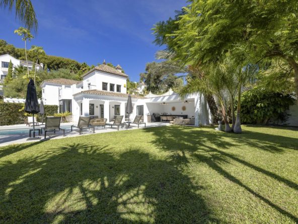 Located in Paraíso Alto, between Marbella and Estepona, this villa combines the timeless charm of Andalusian style with a touch of modernity. The white walls and tiled roofs give the property a cozy feel, set in a lush and peaceful environment.