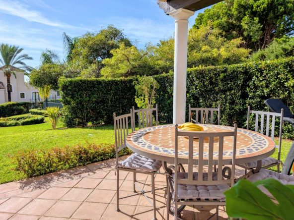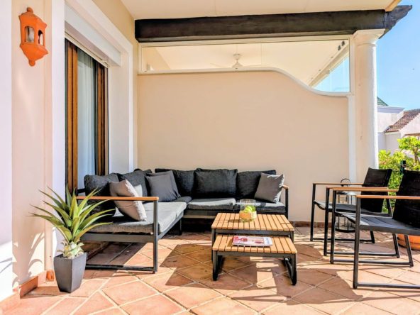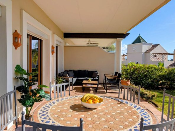 Up the stairs there is a distribution hall leading to great size master bedroom with ensuite bathroom and two good size guest bedrooms sharing family bathroom. All the bedrooms have access to terraces, come with fitted wardrobes and independent thermostats for A/C.