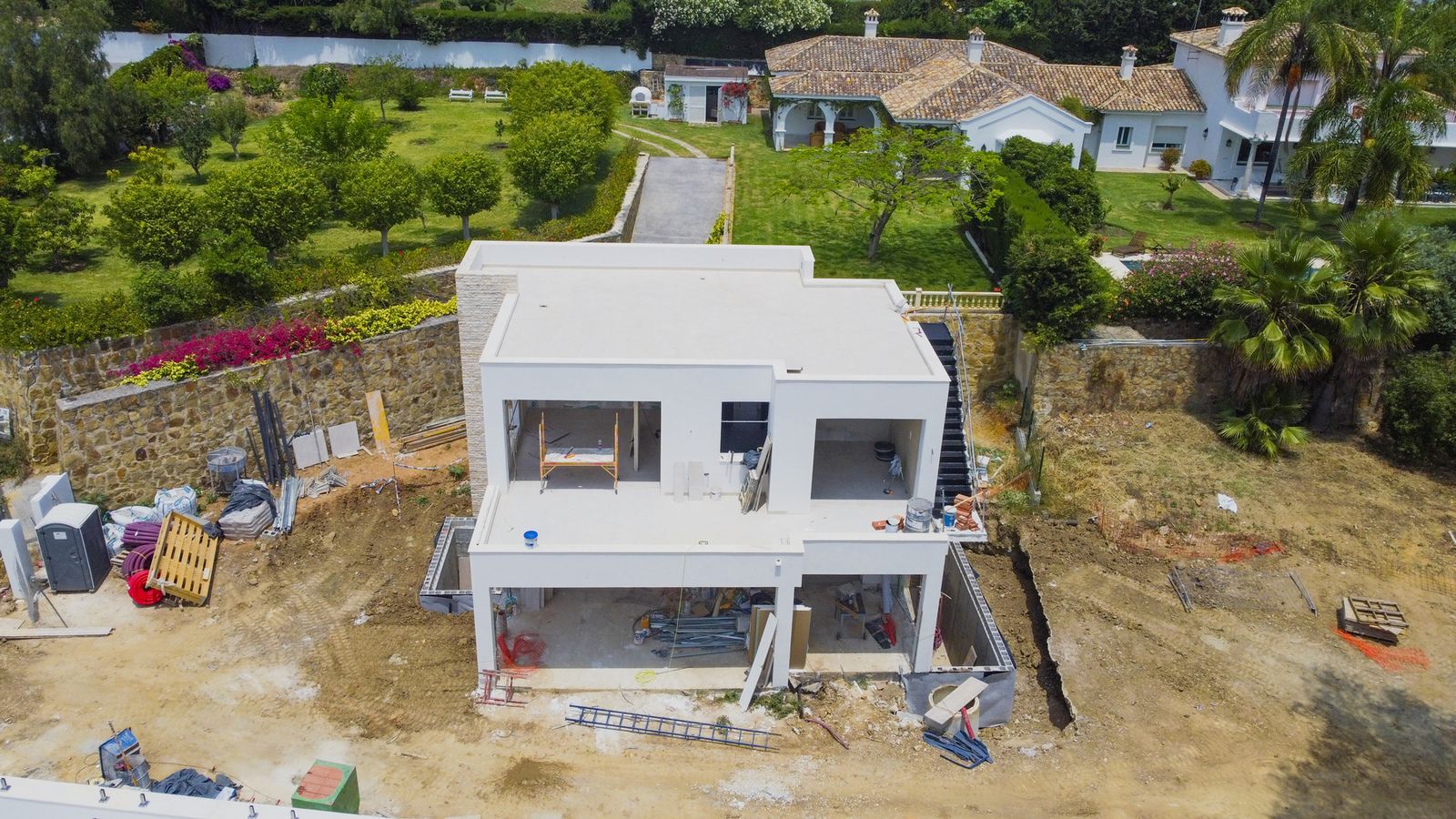 The basement level in this villa proposes at the moment a diaphanous space, which gives the new buyers yet the opportunity to make 1 or 2 extra bedrooms en-suite, a storage room, a gym, a cinema room etc..