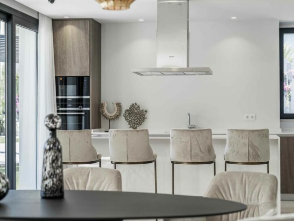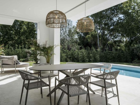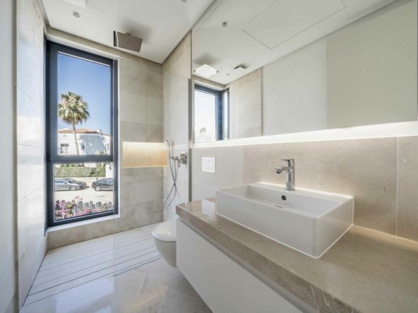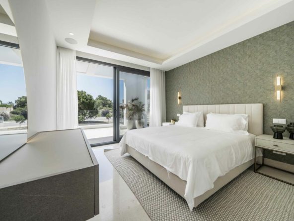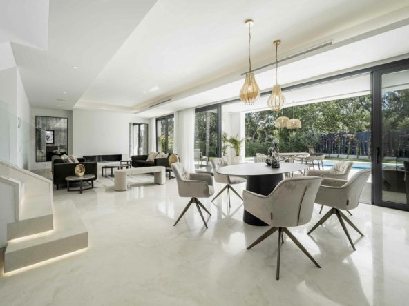 The villa is located in the renowned and tranquil district of El Campanario Golf, nestled between Marbella and Estepona, along the New Golden Mile. The property enjoys an excellent location, just one kilometer from the sunny beach and only a 10-minute drive from Puerto Banús. The area is characterized by luxurious villas and apartments, all surrounded by lush greenery.