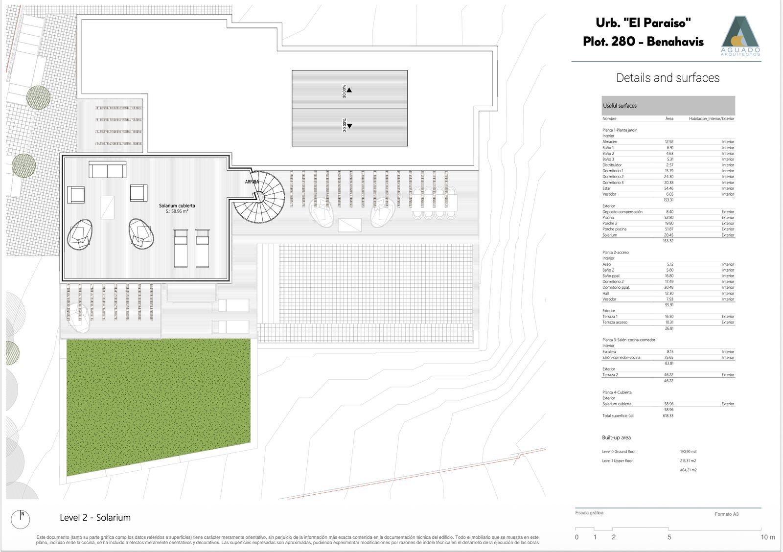 Above, a generous roof-top solarium provides an elevated retreat with all-day sun, chill-out areas and far-reaching views across the surrounding greenery and landscape.