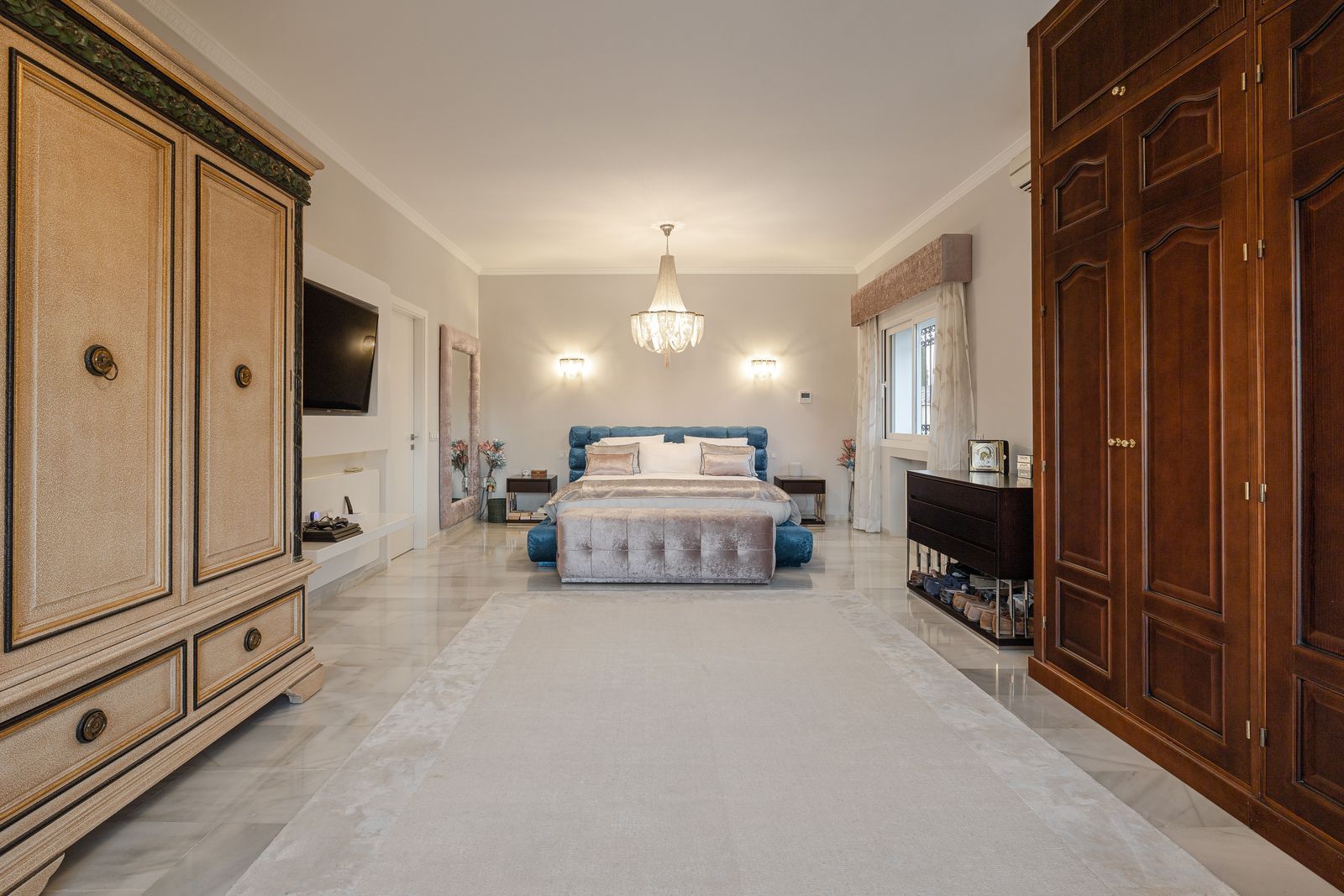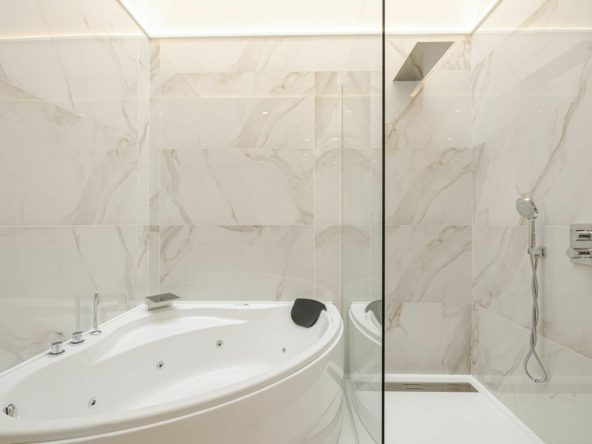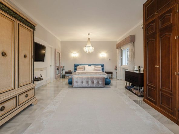 The villa boasts six generously proportioned double bedrooms, each featuring its own en-suite bathroom, ensuring maximum comfort and privacy. The interiors are bright and airy, with an abundance of natural light flowing through the thoughtfully designed spaces.