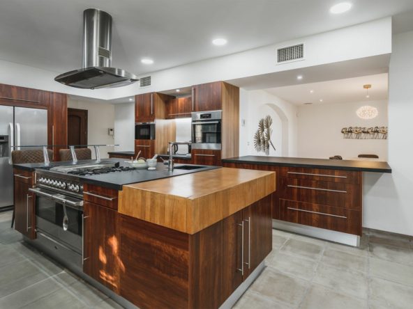 From the custom-made sofas and chairs to the hand-crafted glass in the “Alquimia” room inspired by Arabic design, and the industrial-style lamps imported from Hong Kong, this villa achieves a perfect balance of symmetry and comfort.