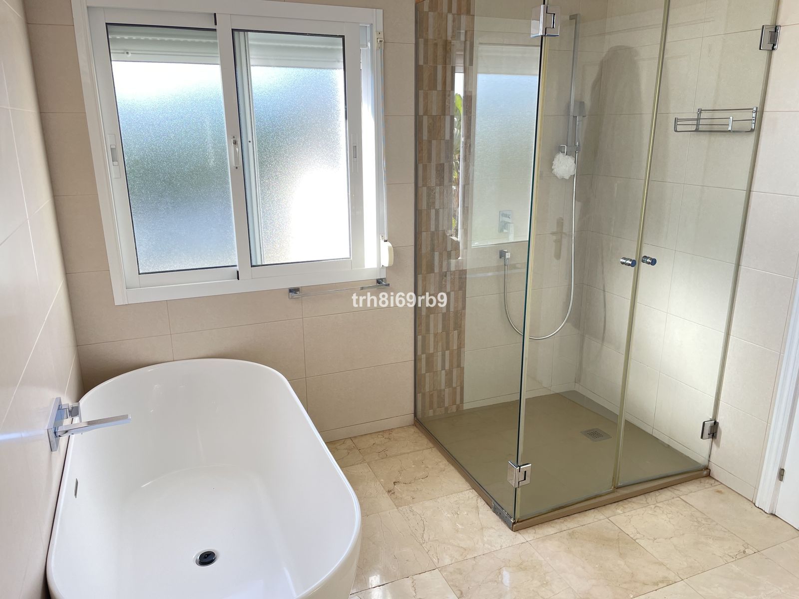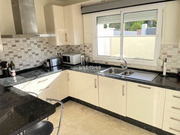 Discover this stunning 3-bedroom, 3-bathroom detached villa that offers a perfect blend of luxury and comfort. Located on just a short stroll from the beach, this property is an ideal retreat for those seeking a seaside lifestyle. The spacious lounge welcomes you with abundant natural light, while the modern fully fitted kitchen is perfect for culinary enthusiasts. The ground floor features an en-suite bedroom, making it suitable for individuals with mobility issues. On the 1st floor, the master bedroom boasts a large en-suite bathroom, complete with both a bath and a walk-in shower, and opens onto a south-facing terrace where you can soak up the sun. A second guest bedroom on the first floor also includes an en-suite bathroom with a walk-in shower. Step outside to enjoy your private pool, which has pre-installation for heating, ensuring year-round enjoyment. The garden and pool area bask in sunlight for most of the day, creating an inviting outdoor space. The local village of Cancelada is just a 10 minute walk over the foot bridge, with a variety of bars, restaurants, banks and supermarkets. With off-road parking available and located on the beach side of the New Golden Mile, this villa is perfectly positioned between Estepona and San Pedro, making it convenient for all your needs.