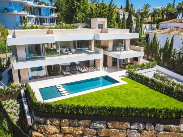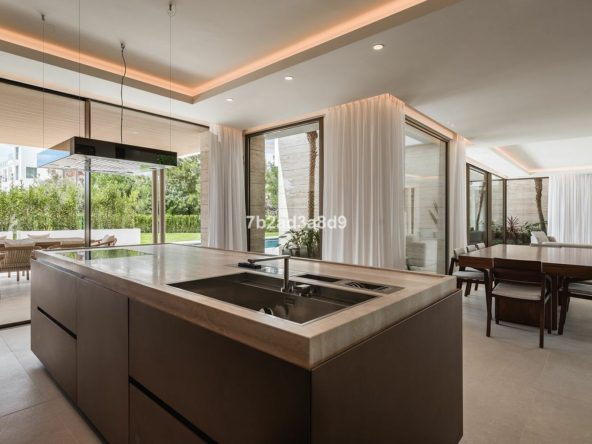 Enjoying a prime corner plot with its own cul de sac entrance, this beautiful, new villa boasts spectacular design and finishing. The features include a total of over 900m2 of build over 3 floors plus a glorious rooftop solarium. In addition to the exceptional living area, the property also has state of the art domotics, underfloor heating a gymnasium and spa and its own wine cellar. Interior parking for 3 cars and car ports for 2 more add to the privacy and security. The villa has just been completed and is ready to move in