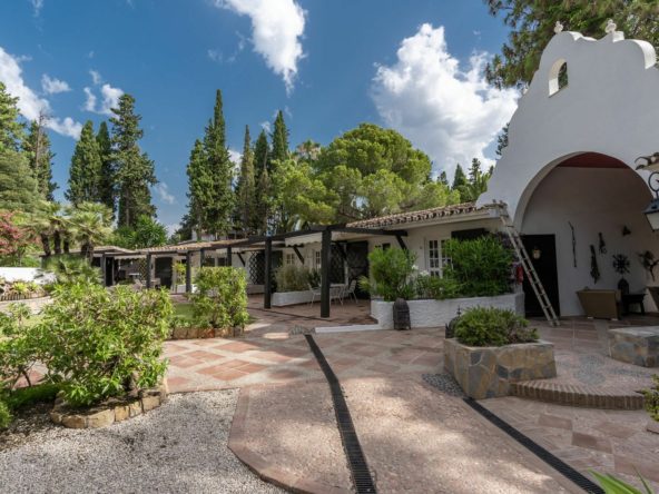 Designed in the style of a traditional Spanish Cortijo, this excellently maintained property of nearly 2238m2 sits across two separate plots (totalling nearly 10,000m2) featuring private individuals casitas and separate villas, extensive outdoor and indoor entertaining space, and staff quarters – all surrounded by mature and secluded gardens.