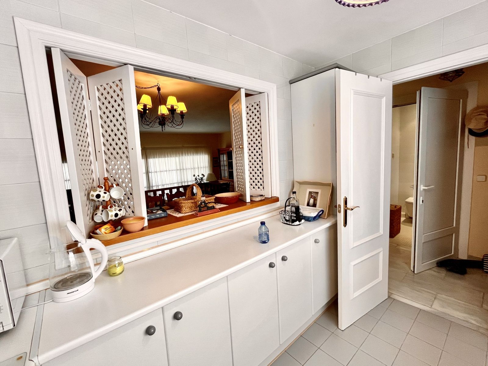 Upstairs, the first floor comprises 3 bright bedrooms and 2 bathrooms. The master bedroom benefits from an en-suite bathroom and, together with the second bedroom, has access to a generous terrace affording panoramic sea and mountain views. The third bedroom, with its west-facing aspect and fitted wardrobes, provides ample storage and natural light. Double glazing, marble floors, and electric blinds ensure year-round comfort throughout the home.