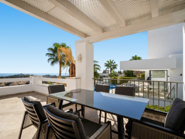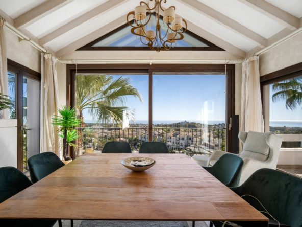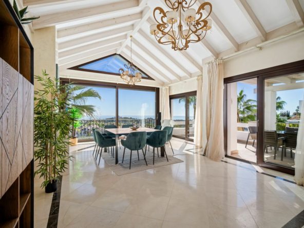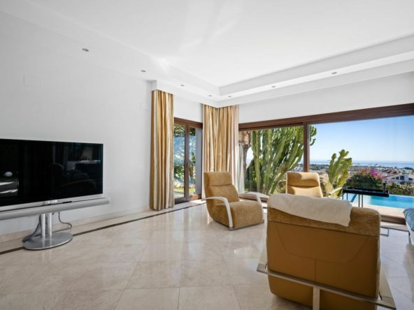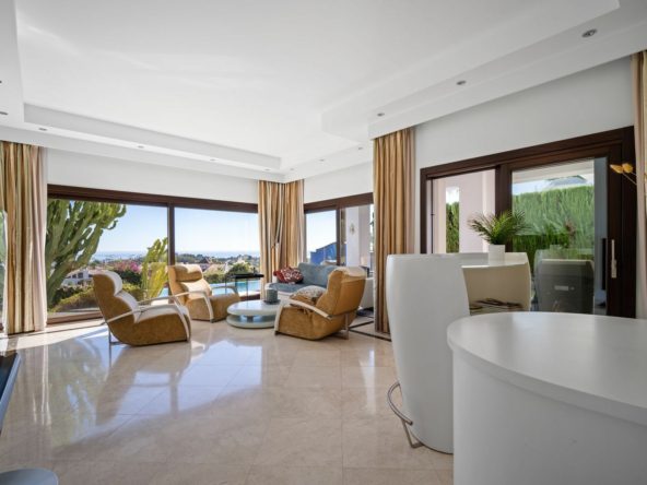 Located in the prestigious gated community of Mirador del Paraiso, this villa boasts breathtaking panoramic sea views. The property is within a very close proximity to renowned golf courses and easy access to Estepona’s myriad restaurants as well as numerous amenities such as shops, a tennis club, International and Spanish schools as well as public and private health services. The beach is only a short drive away and Malaga airport is an approximate 50 mins drive.