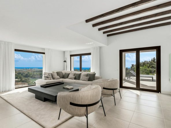 We are delighted to offer this exquisite modern Andalusian residence, boasting sweeping views of the sea and surrounding mountains.