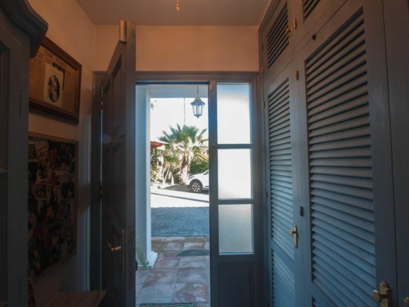 Access to the property is via an electric gate, leading to a spacious parking area with room for several vehicles, part of which is covered. Upon entering, you are welcomed by a well-maintained mature garden with lawn and a variety of flowers, creating a pleasant and private setting.