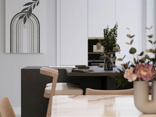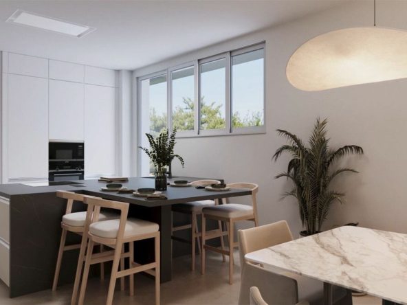 The interior design focuses on comfort and functionality, featuring spacious open areas and high-end finishes. The living room, surrounded by large windows, connects to a fully equipped gourmet kitchen—perfect for those who enjoy the culinary arts in an elegant setting. The bedrooms, all with en-suite bathrooms, stand out for their privacy, brightness, and direct access to private terraces that invite relaxation.