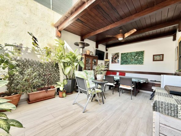 On the ground floor, behind the main entrance, there is a cosy living-dining room, a fully equipped kitchen, a guest toilet and a charming patio, ideal for enjoying pleasant summer evenings. In the basement, the property has a laundry room and a large garage for two cars, a real privilege in this area. The first floor has three bedrooms and two bathrooms. Finally, on the top floor, there is a master bedroom with a small terrace and a full bathroom. In the basement, the property has a laundry room and a large garage space for two cars, a real privilege in this area.