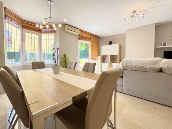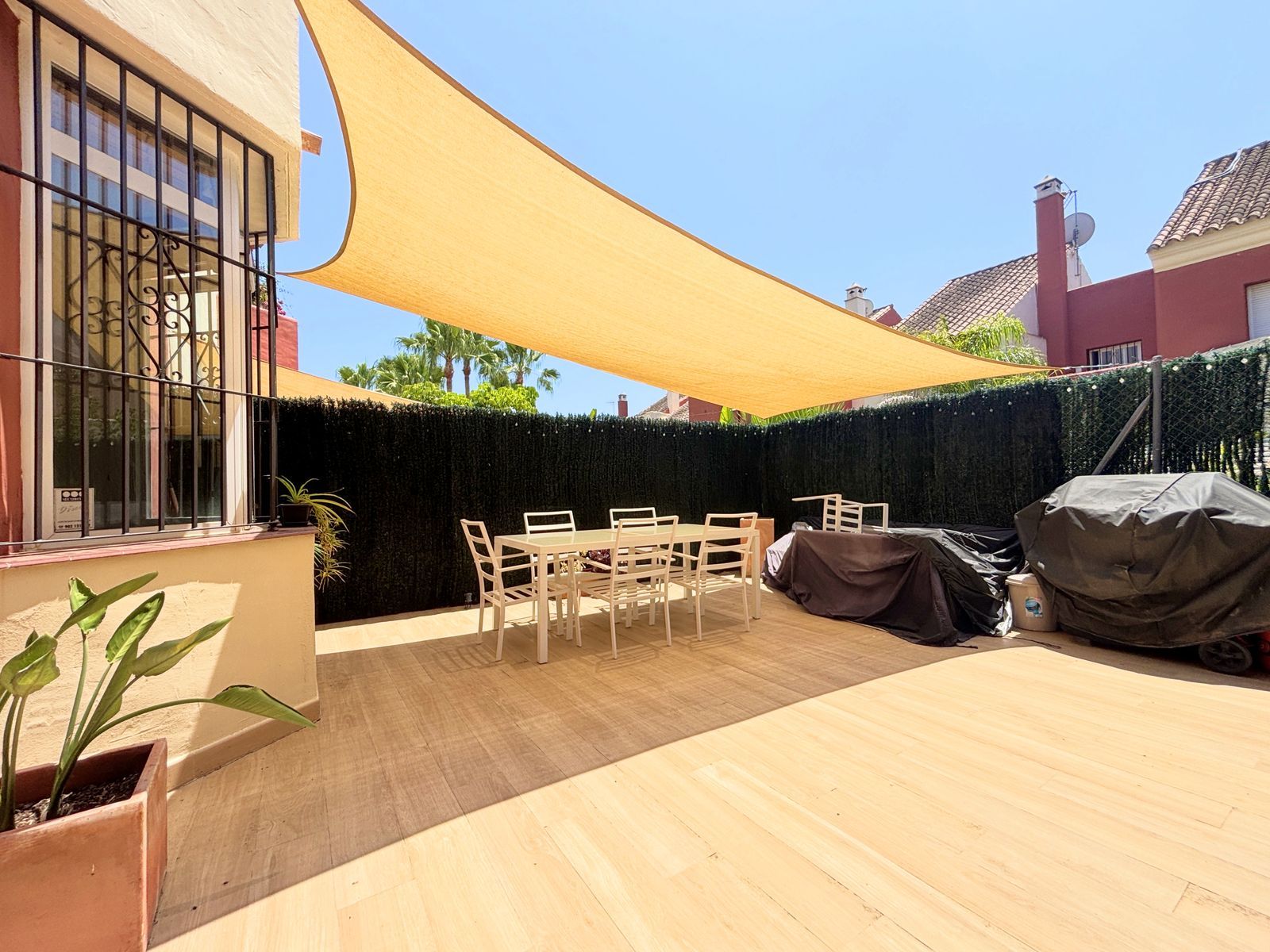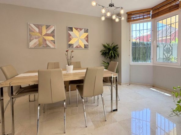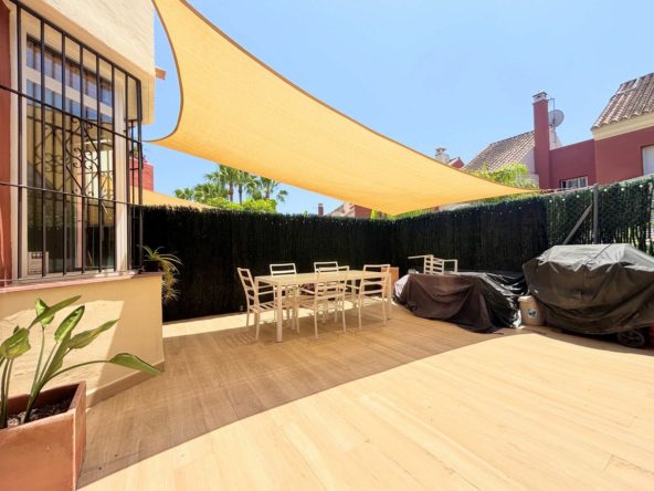 Located in a peaceful residential development in Estepona, just a few minutes' drive from all amenities, shops, and schools, this bright south-facing townhouse is spread over three comfortable levels — perfect for families or as a second home on the Costa del Sol.The basement level features a spacious 53 m² private garage, ideal for both vehicles and storage.The main floor offers a guest toilet, an independent kitchen, and a cozy living-dining room with direct access to a pleasant terrace, which in turn provides easy access to the communal areas and swimming pool — perfect for enjoying the Mediterranean climate.Upstairs, there are three naturally bright bedrooms and a full bathroom; the master bedroom also includes a small private terrace.The community is well-maintained and quiet, with a swimming pool and green areas, all with low maintenance costs.An excellent investment opportunity, whether for year-round living or as a high-yield rental during the peak season.Don’t hesitate to come and visit!