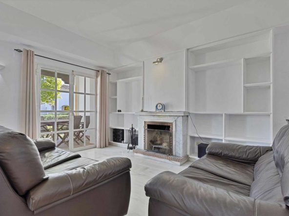 Upon entering, you are greeted by a charming front patio adorned with colourful flowers and enough space to park your vehicle. The interior features a spacious and bright living room with a fireplace, opening onto the communal garden, and a fully equipped modern kitchen. On the ground floor, you will find a bedroom with an en-suite bathroom and a guest toilet.