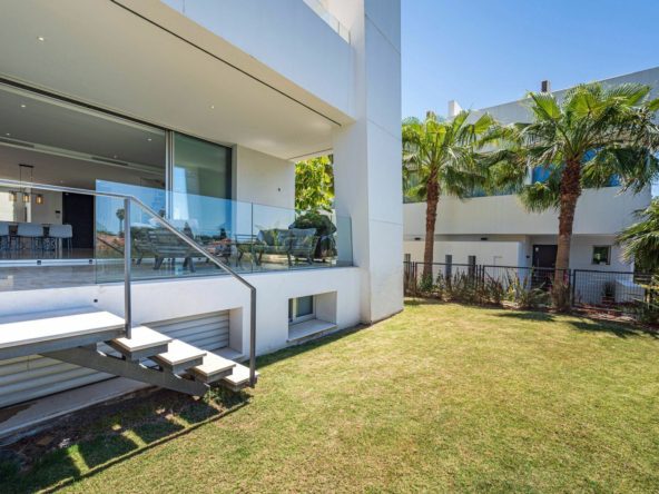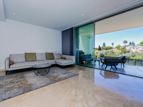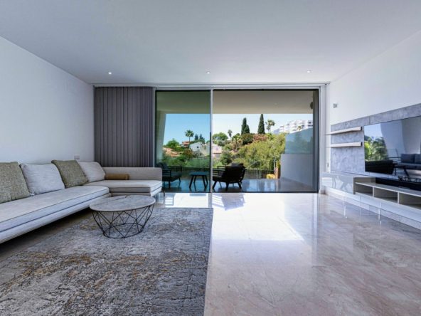 Completed in June 2020, this tastefully furnished residence features an open-plan kitchen flowing seamlessly into the living area, leading out to a terrace and compact garden on the main floor. Upstairs, the master bedroom boasts ample wardrobe space, and en-suite bathroom, and a terrace with sea views, accompanied by two additional bedrooms sharing a bathroom.