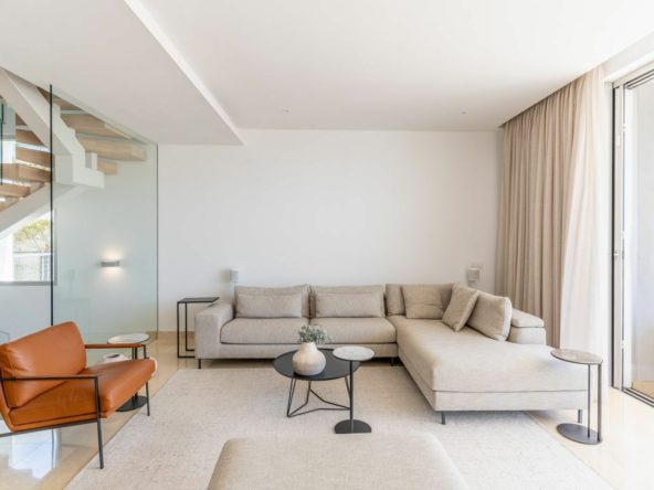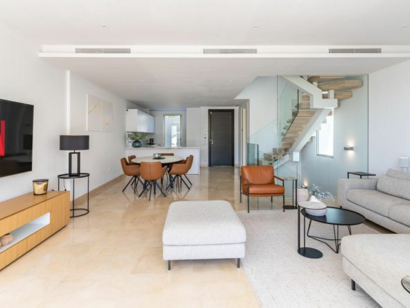 The townhouse also benefits from a large, rooftop terrace complete with a heated plunge pool, big sitting and dining areas and enjoys a beautiful sea view towards the bay of Marbella and Gibraltar. From the pool area, one can enjoy a beautiful sunset every evening.