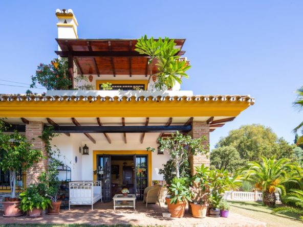Rustic style villa distributed over three floors, located in a quiet area of Elviria. The property has four bedrooms, two bathrooms and a toilet, a fully fitted kitchen and a spacious living room. It is characterized by its high ceilings, its Andalusian style and the large basement with an area of 200 m2. It also has a garage with capacity for three cars.
