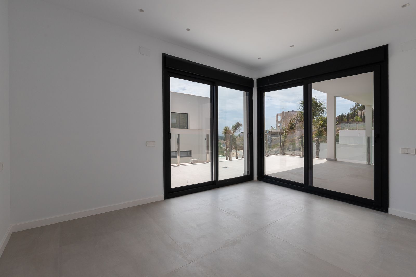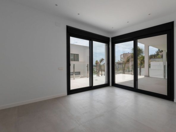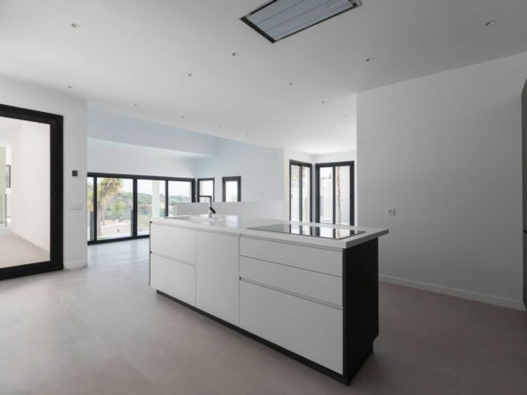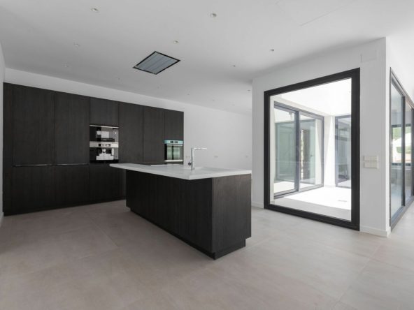 On the ground floor there is an en-suite bedroom, a bright and spacious living room, an open plan kitchen connected to the living room and a large terrace with beautiful open views and access to the pool and garden area. On the first floor we find another three bedrooms, all of them with en-suite bathrooms, and the access to the large solarium to enjoy the best views.