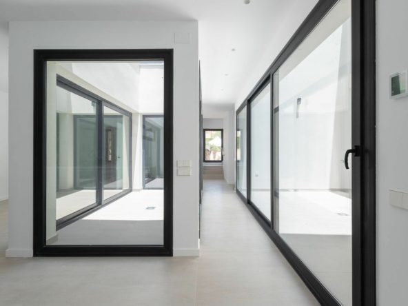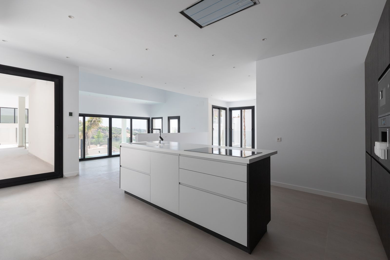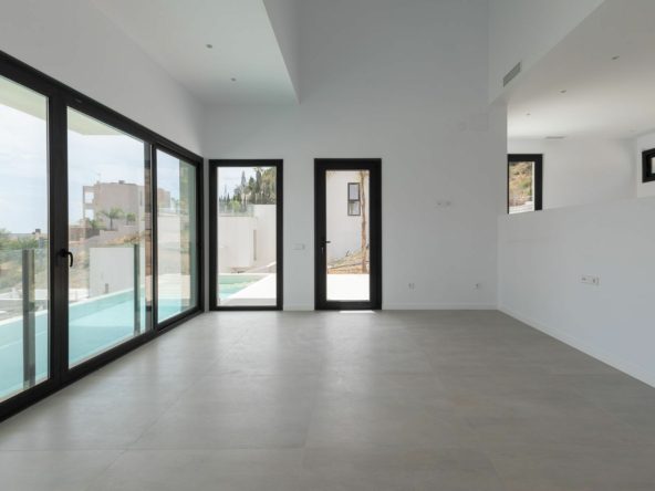 Luxurious and exclusive newly built villa located in Elviria, near the Santa Mª Golf course. The house has been built in high quality and in a modern style and has beautiful open views towards the sea. It is distributed over two floors plus the basement, and has an elevator that connects all the floors.