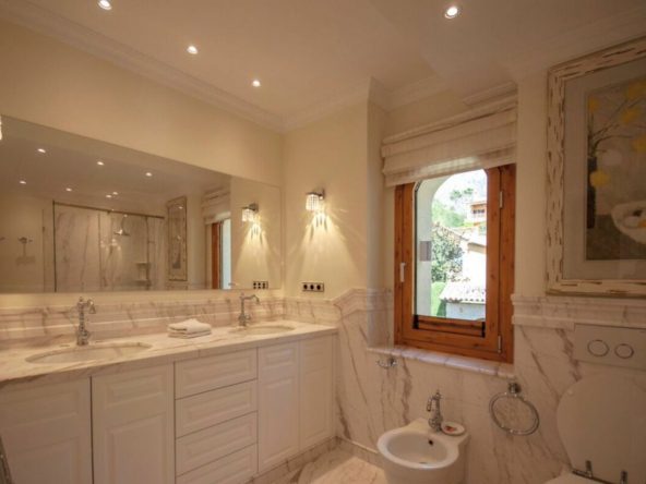 Luxurious Mediterranean style villa in elevated position with lovely panoramic sea views is for sale in the famous area of Marbella, Sierra Blanca. This is a super family home in a privileged position allowing spectacular sea views and the Golden Mile.