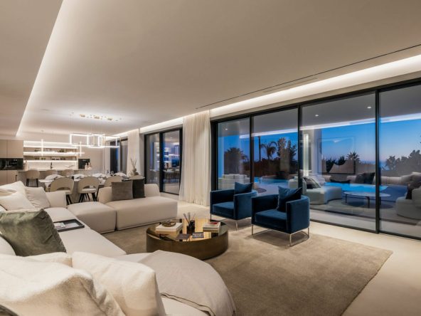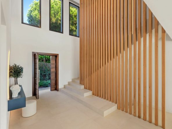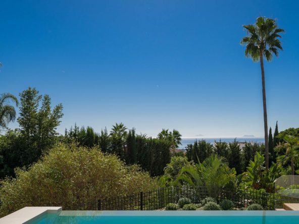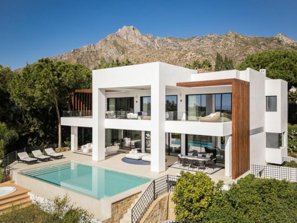 This exquisite villa is situated in a stunning location on the slopes of La Concha mountain within the prestigious private urbanization of Sierra Blanca, located on Marbella's Golden Mile. Here, serenity, a natural environment, and closeness to the city's most renowned landmarks create a tranquil atmosphere, just a few minutes away from Marbella's city center, the historic old town, the Roman Bridge, and Puerto Banús. The villa underwent a complete renovation in 2025. The furniture is available for purchase separately at a price of €350,000 plus VAT. Notable features include aerothermal heating, an automatic irrigation system, glass doors, built-in wardrobes, a laundry area, an open-plan fully equipped kitchen/living room, 24-hour security, a wine cellar, air conditioning, a barbecue, double glazing, a guest toilet, marble flooring, a sauna, a gym, underfloor heating, an alarm system, a basement, furnishings, security cameras, a cinema room, a fireplace, a private community, a jacuzzi, a Turkish bath, a dressing room, porcelain tile flooring, and more.