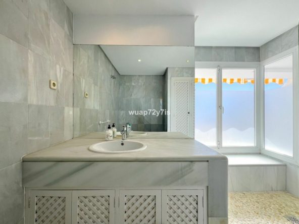 Tucked away in the prestigious gated community of Camoján Blanco, this beautiful townhouse captures the essence of Marbella living. With only 27 homes in the complex, surrounded by lush tropical gardens and a spectacular saltwater pool with beach effect, it’s a private oasis just minutes from Marbella’s vibrant center and golden beaches.