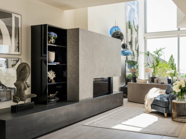This luxurious modern house for sale in the heart of the Sierra Blanca is set in the most exclusive residential complex, Meisho Hills, built on a plot of 33.500m2 in 2012. The complex has a total of 58 semi-detached villas, including this unique corner villa, which boasts stunning views of Marbella city, the Mediterranean sea, Gibraltar, and the Moroccan mountain range.
