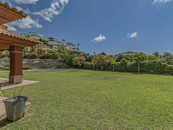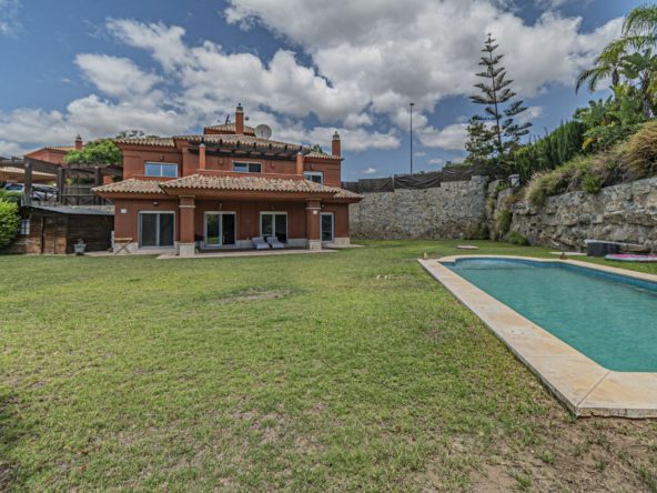 This elegant Mediterranean-style villa enjoys a privileged location next to the golf course, just minutes away from the golden beaches of Bahía de Marbella and the vibrant heart of Marbella.