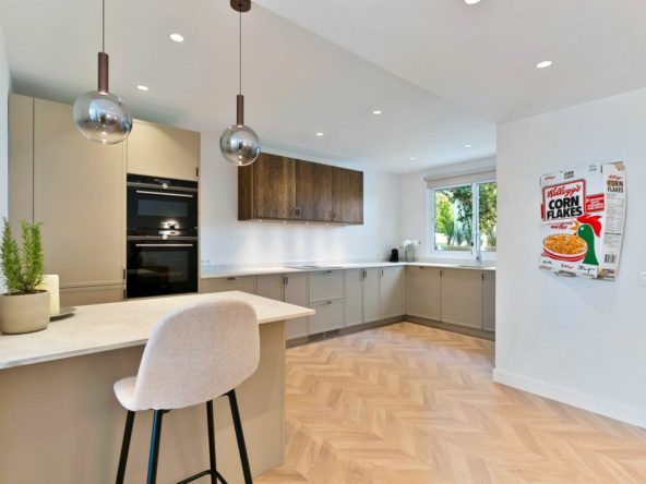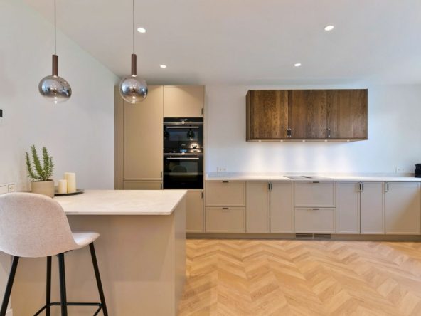 The kitchen is by renowned Scandinavian brand Ballingslöv, fully equipped with modern appliances, including integrated washer and dryer.