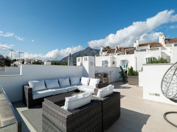 This spacious and light-filled 3-bedroom, 3-bathroom townhouse offers a rare combination of generous interior space, stunning views, and outdoor living in one of Marbella’s most sought-after areas—just minutes from Puerto Banús.