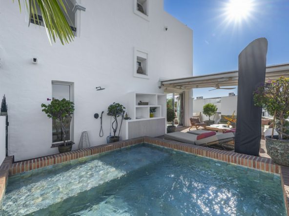 Situated in the sought-after urbanisation of Arco Iris in Altos de Puente Romano, this exceptional townhouse offers a rare opportunity to own one of the most spacious homes within the community. Set in the heart of Marbella’s Golden Mile, just a short walk from the renowned Puente Romano Resort, the beach promenade, and charming dining venues at Forum, its prime location gives residence convenience, prestige, and Mediterranean lifestyle.