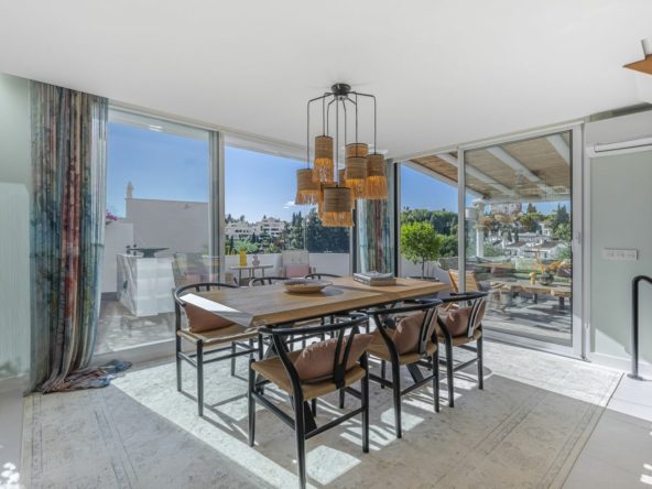 Presented in immaculate condition, the property spans an impressive 250 m² interior space, featuring a refined contemporary design characterised by comfort, natural light, and generous proportions. The main living area offers a large open-plan kitchen and dining space that flows effortlessly to the outdoor terrace and private pool. Ideal for relaxing, entertaining, and enjoying Marbella’s year-round sunshine.