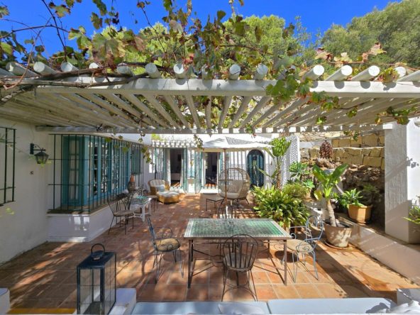Set amidst fragrant pine trees in the prestigious Montúa area, just above Marbella at the foot of the majestic La Concha mountain, this charming single storey cortijo-style villa perfectly blends traditional Andalusian character with modern comforts.
