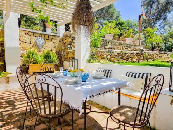 The villa’s swimming pool, a true jewel in the crown, commands mesmerizing open sea views that extend to Gibraltar and the distant shores of Morocco. Framed by mature carob trees, it invites you to unwind in its serene beauty, while the adjacent summer lounge sets the stage for unforgettable moments of relaxation and outdoor entertaining.