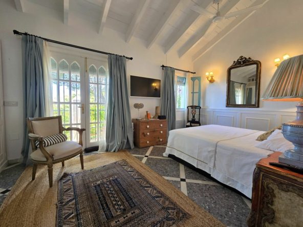 The villa comprises three spacious bedrooms, each with its own bathroom, while the master suite also includes a private sitting area. On the ground floor, a self-contained apartment offers full comfort and independence for guests, complete with its own kitchen and terrace.
