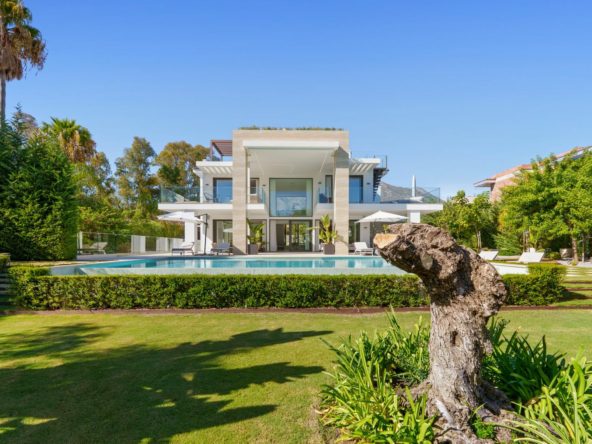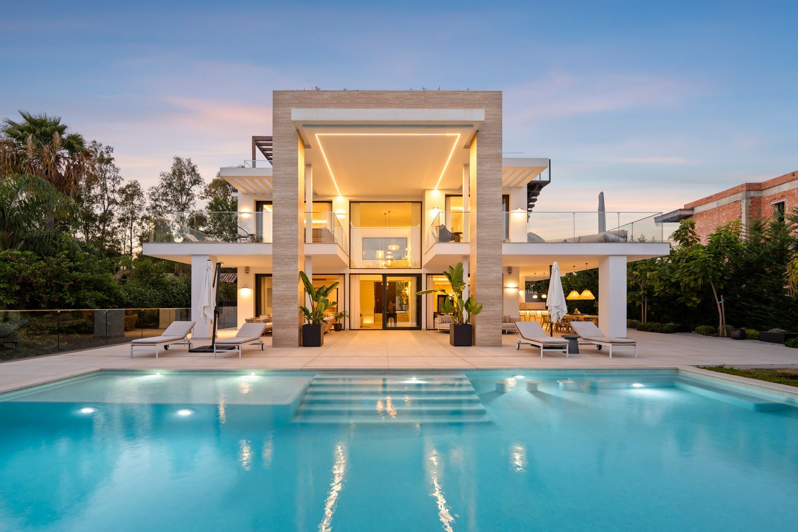 Nestled in the prestigious Altos de Puente Romano on Marbella’s Golden Mile, Villa Romano is the epitome of modern Mediterranean luxury. This striking six-bedroom, six-bathroom residence blends sleek contemporary architecture with warm natural tones, creating an inviting sanctuary just minutes from the beach and Marbella’s finest dining and leisure. Floor-to-ceiling windows flood the interiors with light, while seamless transitions between indoor and outdoor spaces capture the essence of Costa del Sol living.