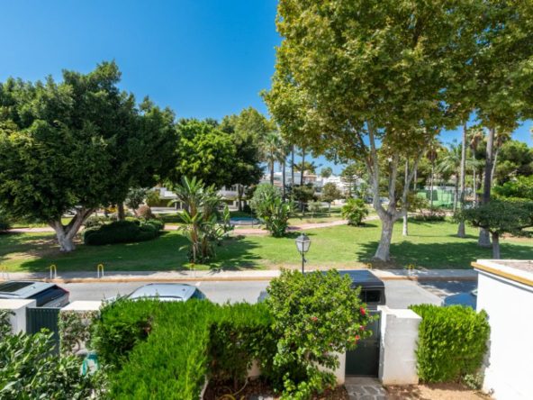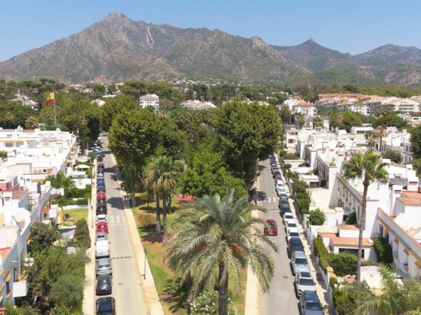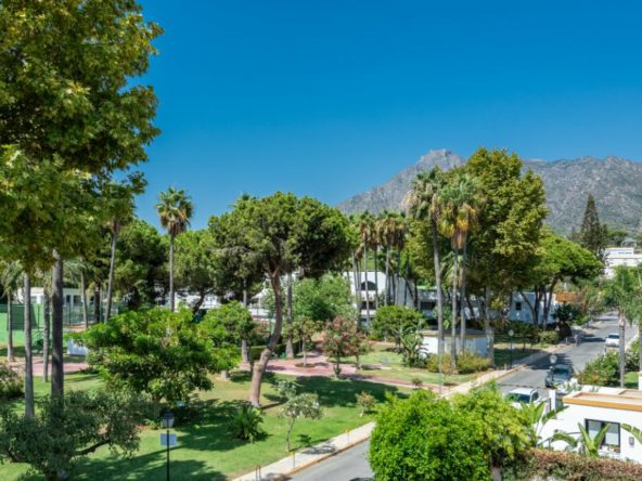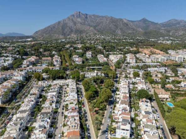 Stunning five-bedroom townhouse is located in the prestigious Marbellamar community on Marbella’s exclusive Golden Mile, just 50 meters from the beach. Recently renovated to the highest standards, it showcases elegant contemporary design and impeccable finishes throughout. The main level offers a spacious open-plan living and dining area opening onto a private terrace ideal for relaxing or entertaining, along with a fully equipped modern kitchen, laundry area, guest toilet, and guest bedroom. The first floor comprises three bedrooms, including one with an en-suite bathroom and private terrace, while the other two share a family bathroom. The upper level features an additional guest suite with access to a large solarium boasting panoramic sea and mountain views. Additional highlights include air conditioning, fitted wardrobes, and marble floors. Residents of Marbellamar enjoy beautifully maintained gardens, a large swimming pool, paddle and tennis courts, a children’s playground, and 24-hour security. With shops, restaurants, schools, and the iconic Marbella Club within walking distance, this property offers an exceptional opportunity for luxury coastal living or an outstanding rental investment on the Golden Mile.
