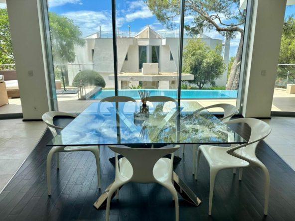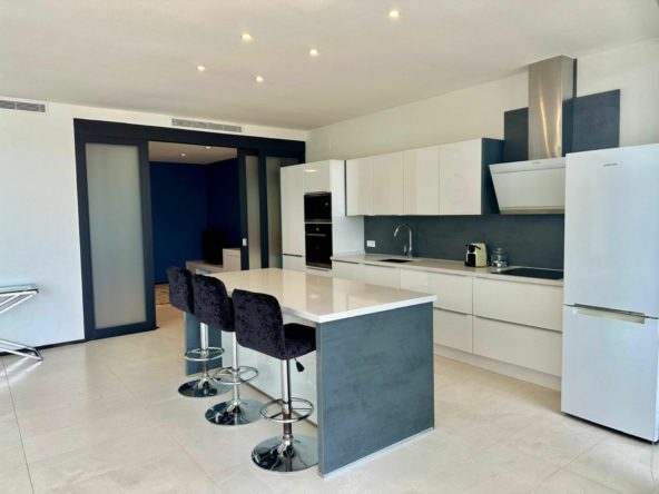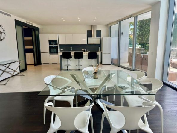 The townhouse is fully furnished and includes a fully fitted kitchen equipped with modern appliances, making it ready for immediate occupancy. Additional amenities include a utility room, a fireplace, marble and parquet floors, a Jacuzzi, and satellite TV. The basement offers extra space, and the property also includes a solarium, a barbeque area, and 3 private garage spaces and storage areas. The air conditioning and underfloor heating systems ensure a comfortable living environment throughout the year.